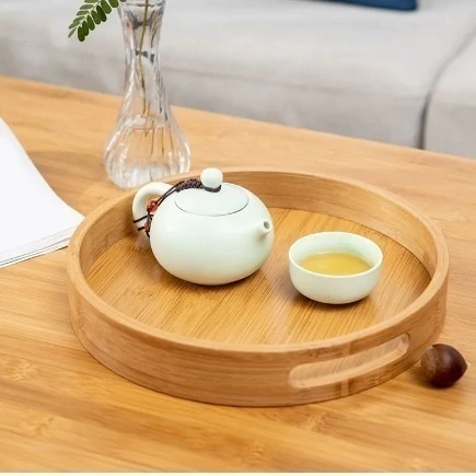 A bandeja redonda com alça é prática e super moderna. Tem um design leve e clássico e alças vazadas.