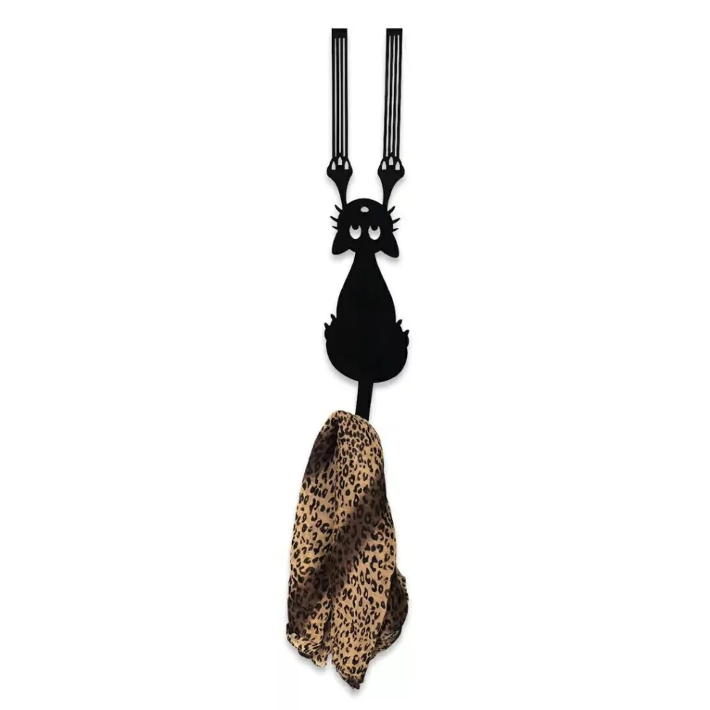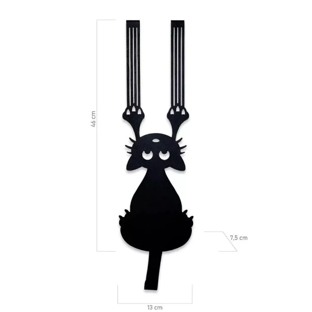 Gancho em formato de gato para pendurar na porta do quarto, prático e funcional, para organizar e decorar. Produto de aço recortado fabricado no Brasil. Todo dia é dia de se divertir! Em qualquer hora e em qualquer lugar! Então, por que não decorar os nossos ambientes com produtos que além de funcionais e práticos sejam divertidos?