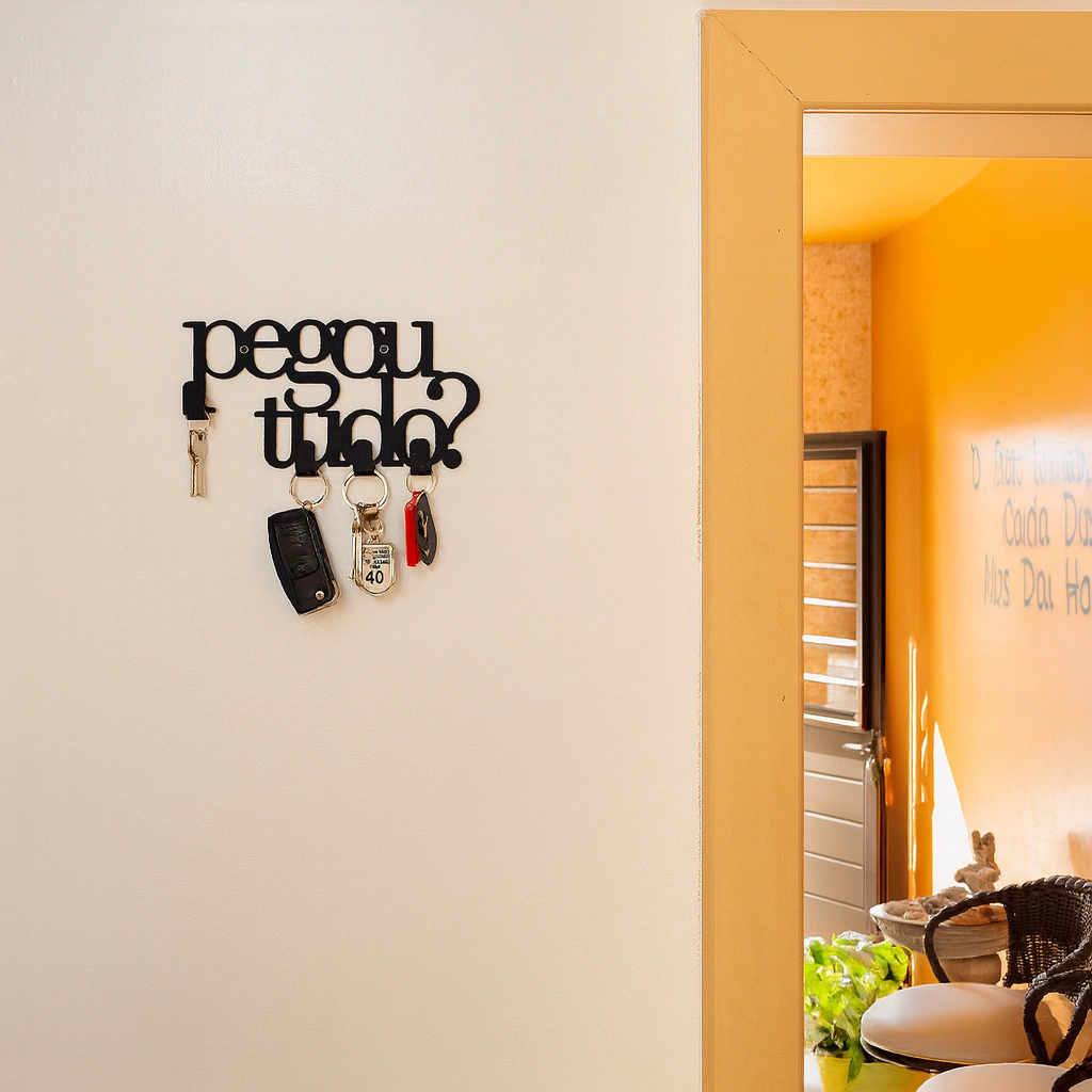 Divertido e jovem, para pendurar as chaves e lembrar você se não esqueceu de nada antes de sair. Este porta chaves foi projetado para fixar em parede de alvenaria com os parafusos e buchas que acompanham o produto.