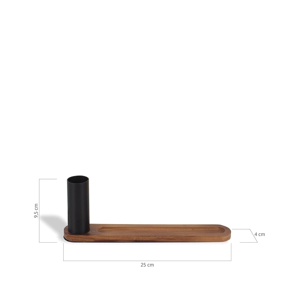 Para pessoas zen, que curtem estilo e praticidade. Esse porta incenso é diferenciado: para colocar o incenso no furinho e o estoque de incensos no tubo. Produto de aço e madeira fabricado no Brasil. A Coleção Floresta Urbana apresenta a união perfeita entre estilo e consciência ecológica, a madeira utilizada torna cada produto único. Os incensos não acompanham o produto.