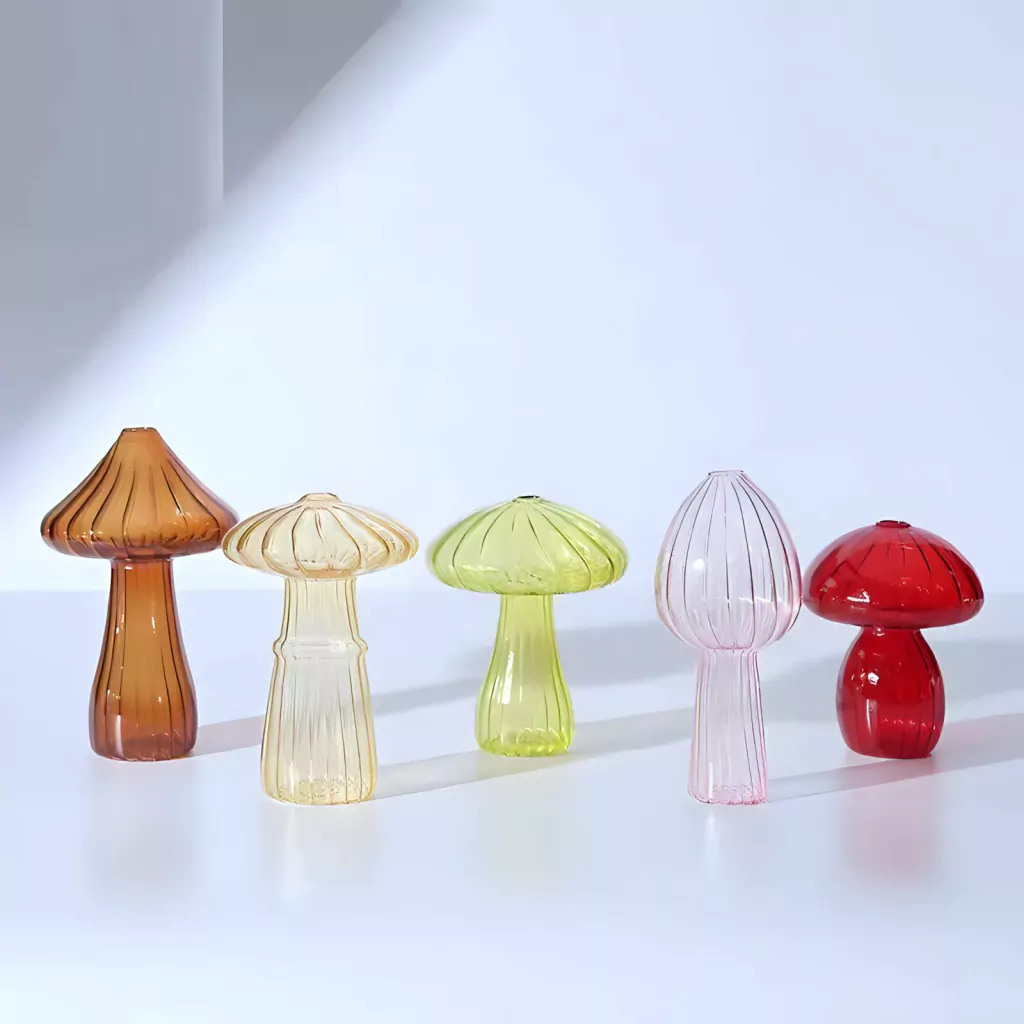 Atemporal e moderno, é um vasinho de vidro colorido perfeito para pequenas plantas artificiais.