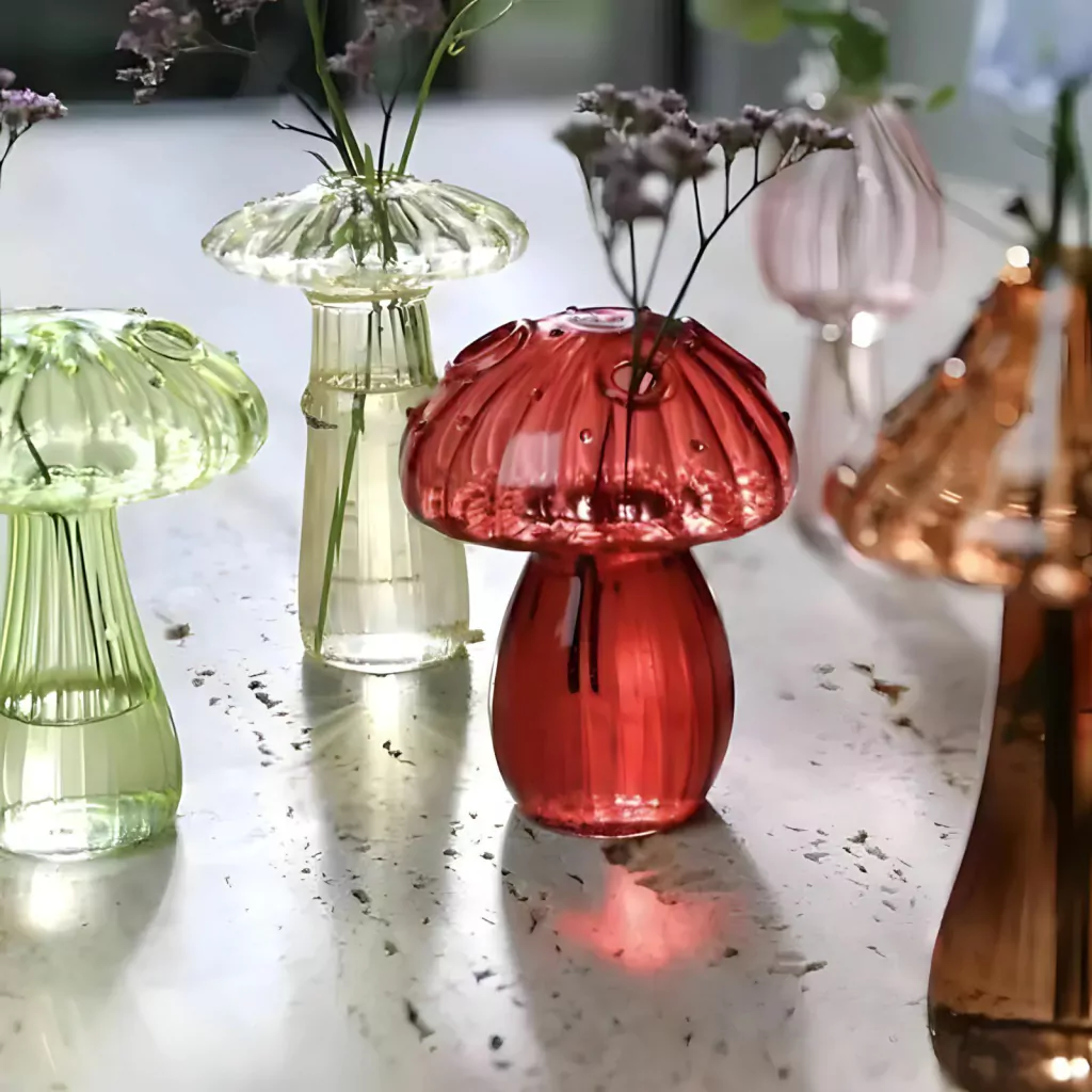 Atemporal e moderno, é um vasinho de vidro colorido perfeito para pequenas plantas artificiais.